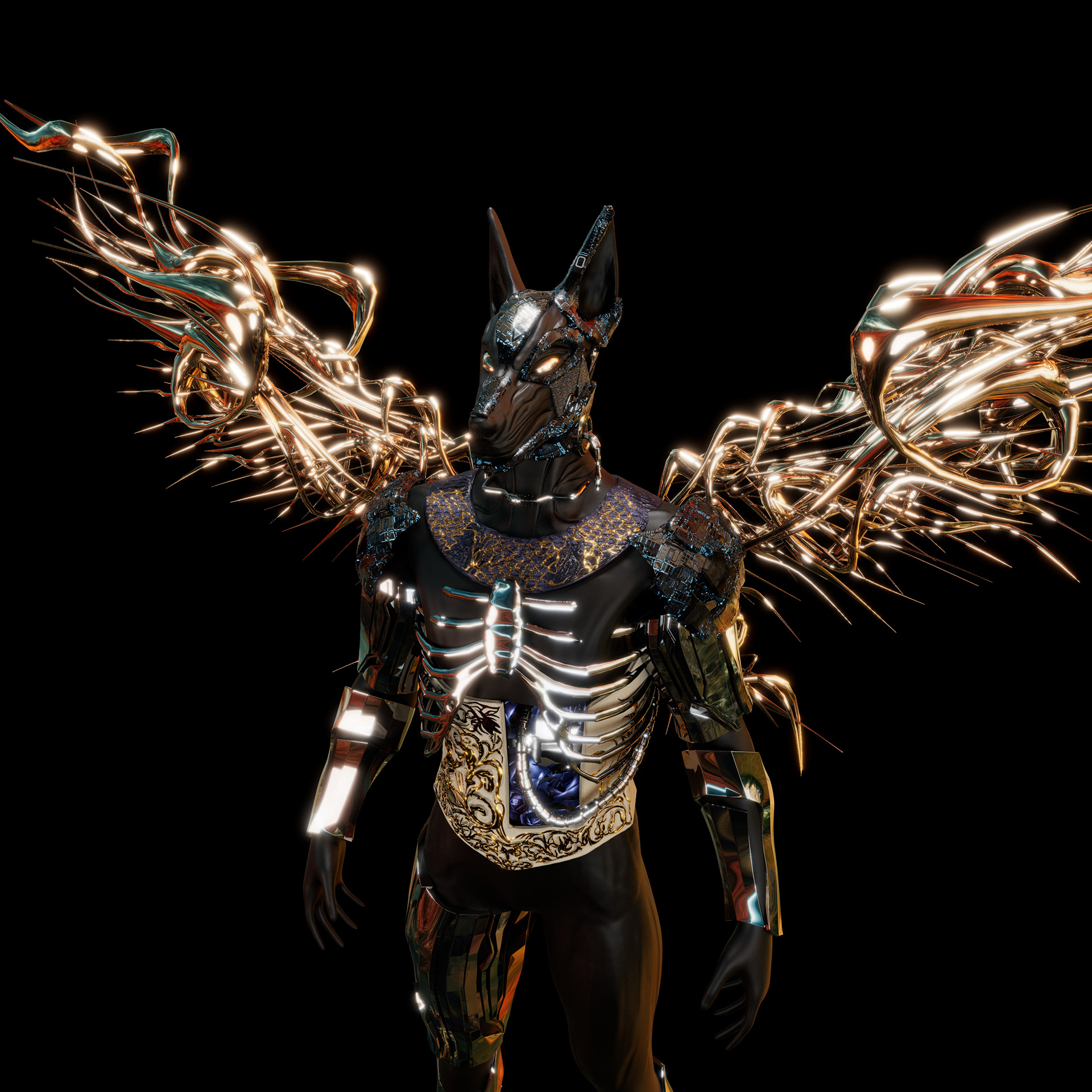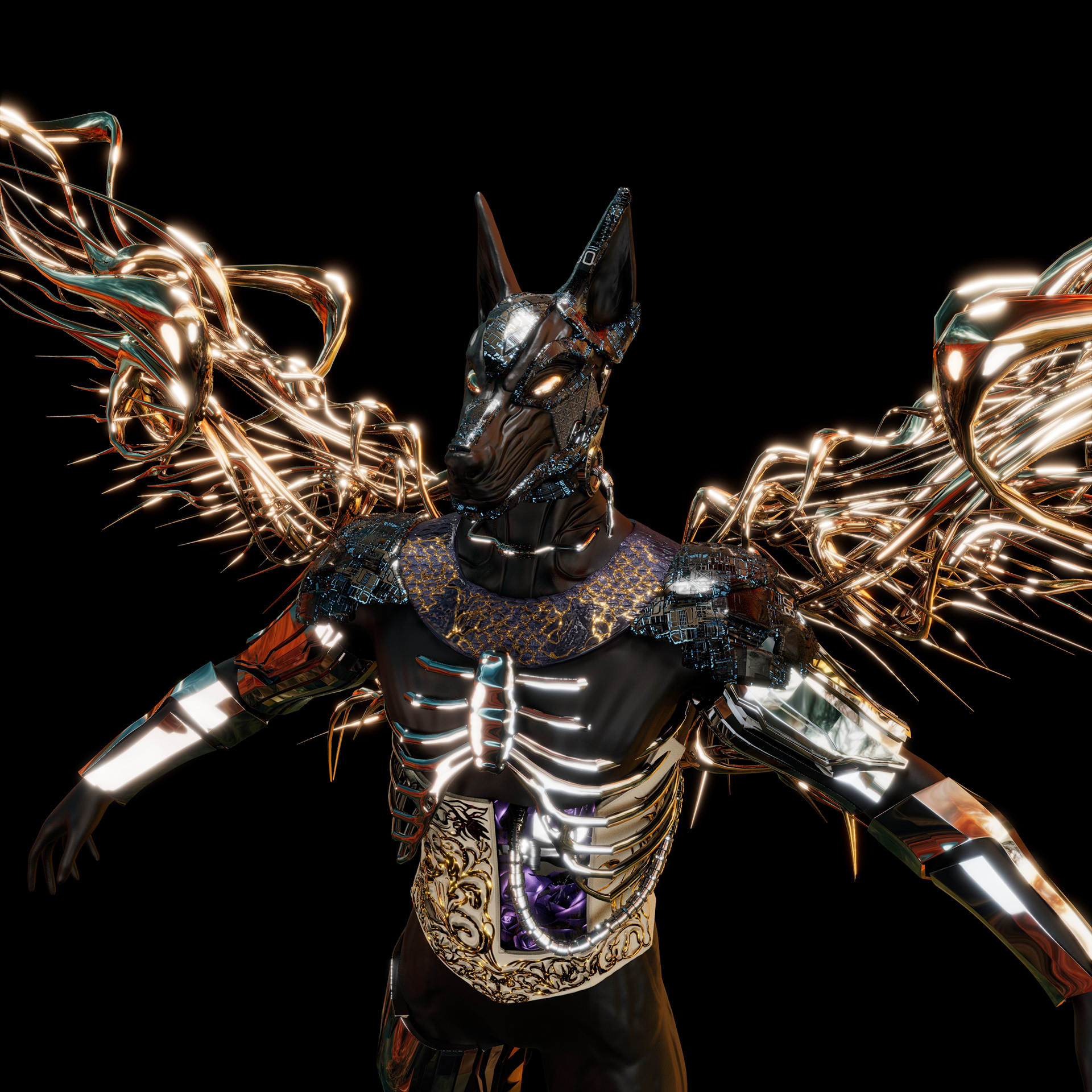 3D character design inspired by Anubis.